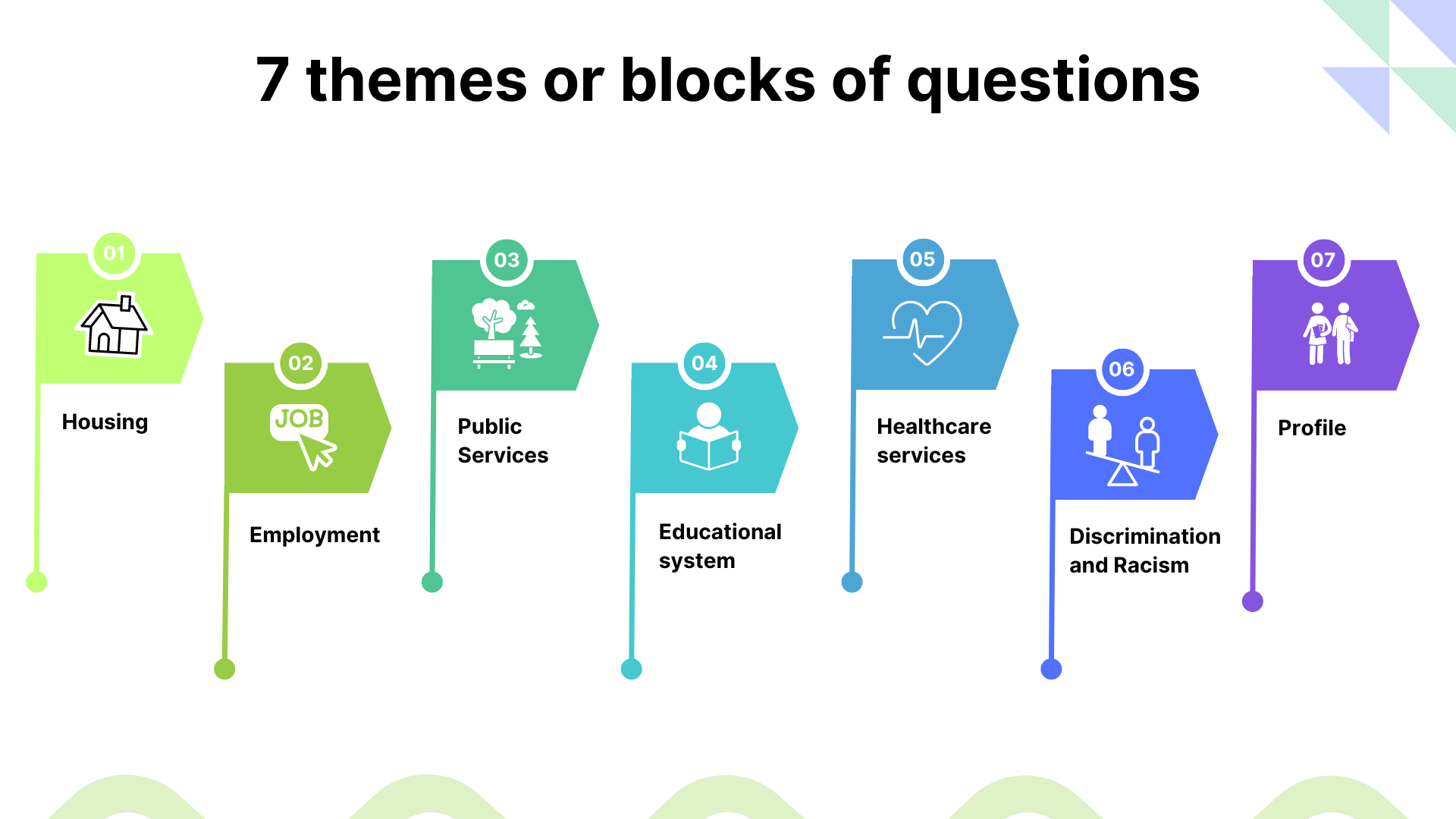In order to generate knowledge about the discrimination experienced by young people in Europe, surveys of young people (aged 18-35) in local neighbourhoods have been carried out on the basis of survey questionnaires drawn up in collaboration by all the researchers involved in the project. Joint questionnaires have been drawn up to compare the results for each field of study (housing, employment, education and health), and the surveys will take place in 2023 in 4 cities.