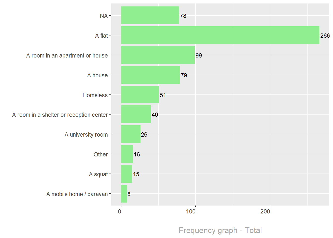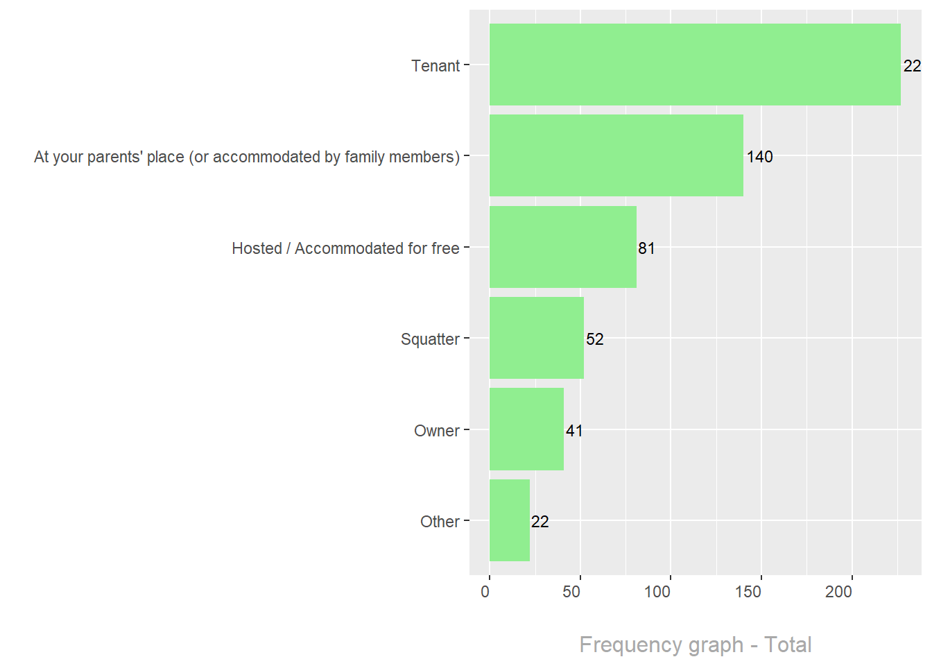 | At your parents' place (or accommodated by family members) | 140 | 25.0 |