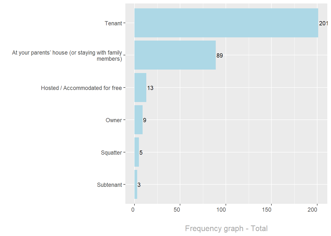 | At your parents’ house (or staying with family members) | 89 | 27.6 |