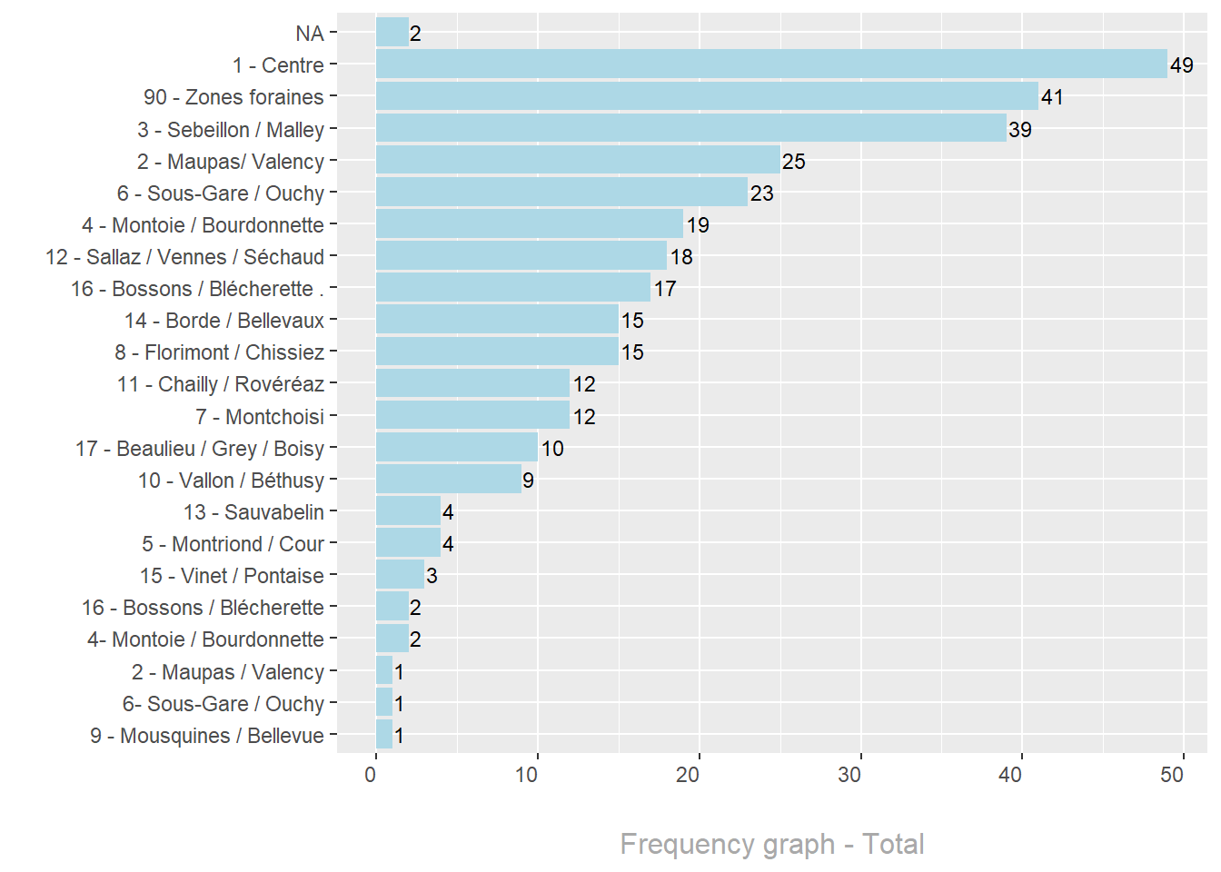 | 15 - Vinet / Pontaise | 1 | 0.3 | 0.3 | 2 | 16.7 | 16.7 |