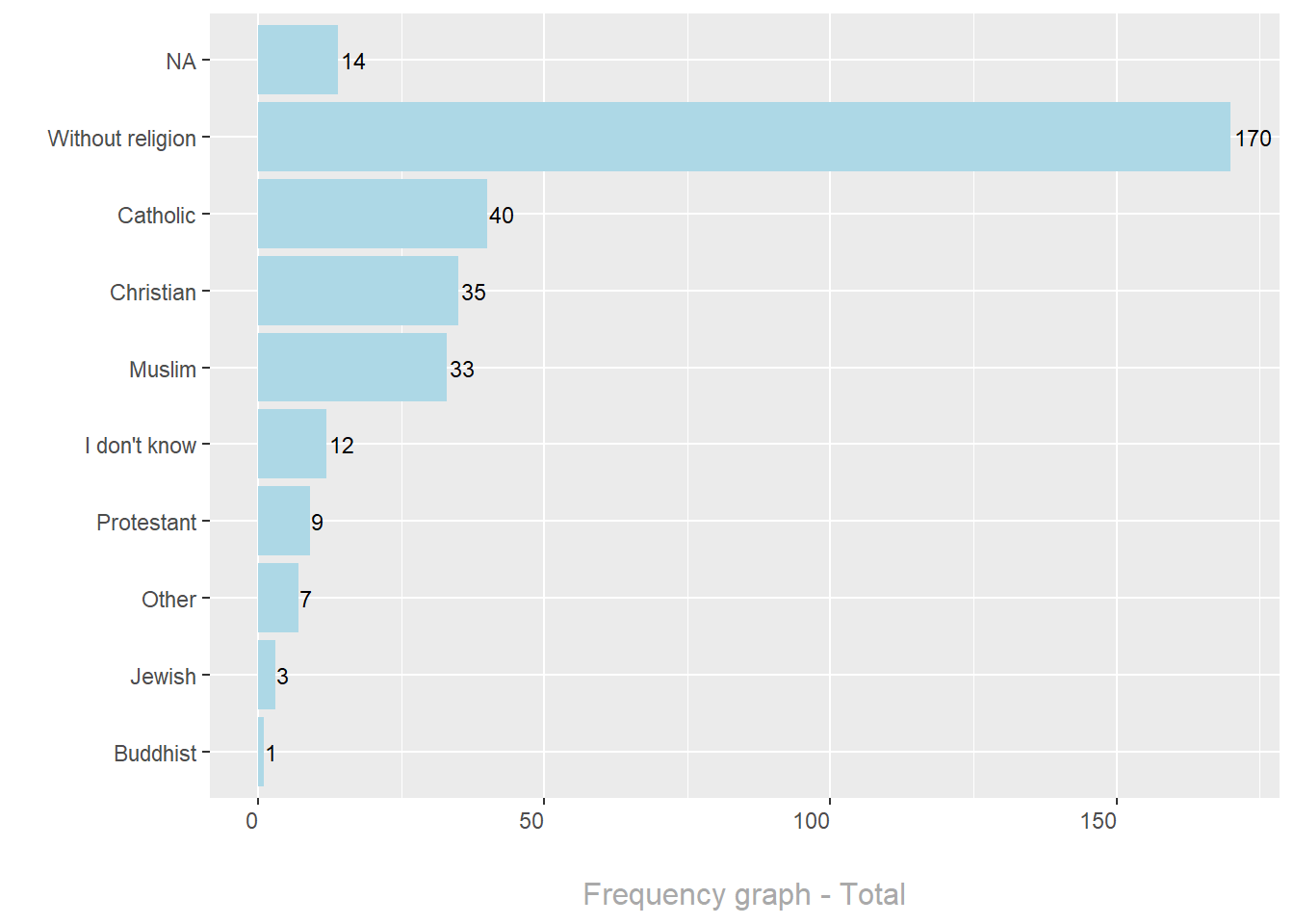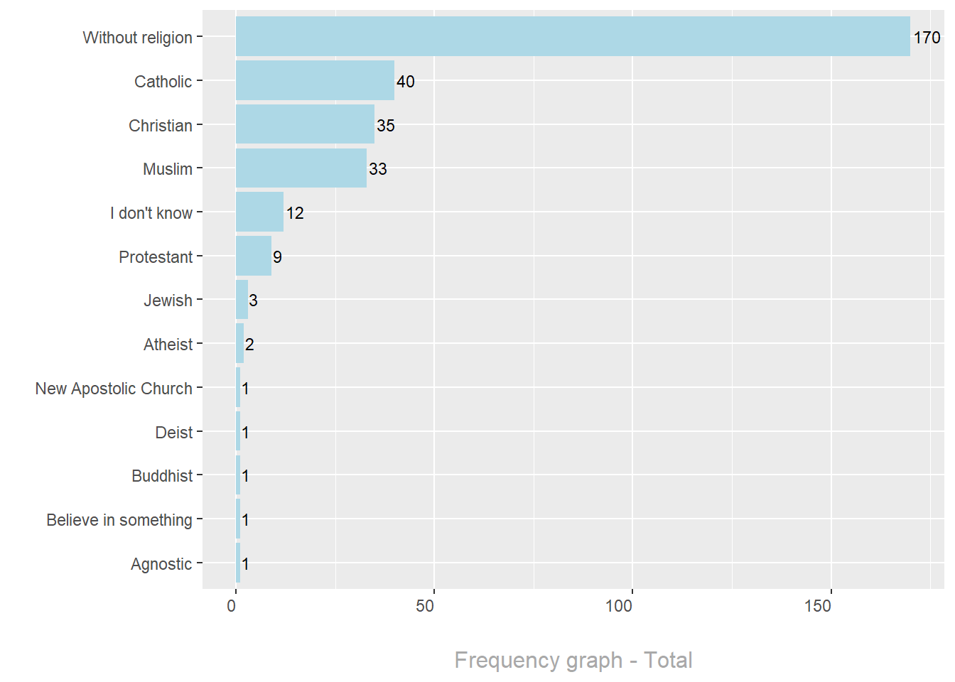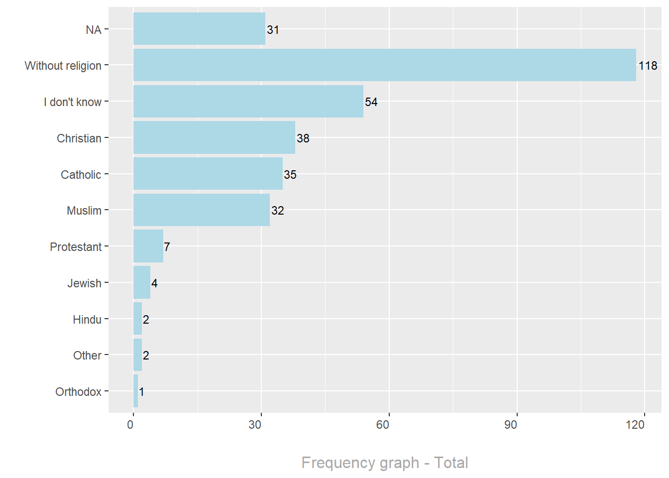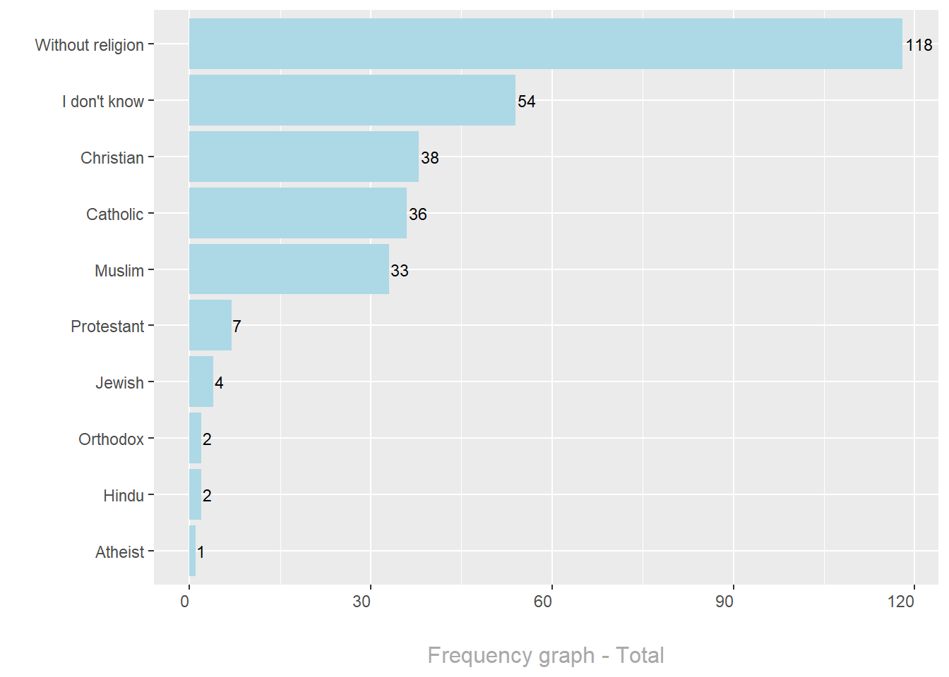 | Without religion | 166 | 53.2 | 55.5 | 4 | 33.3 | 36.4 |