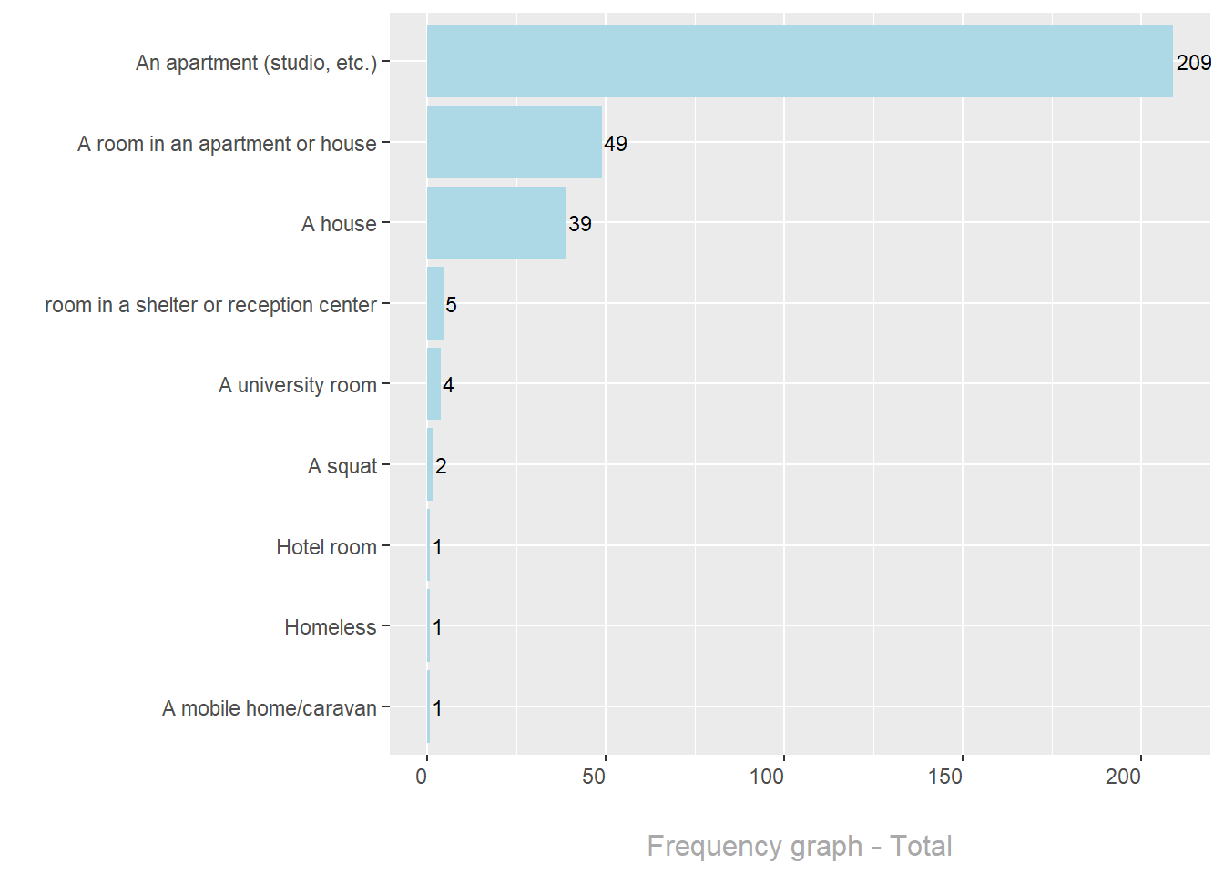 | An apartment (studio, etc.) | 209 | 67.2 |